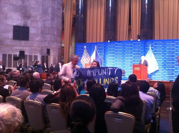 In the spirit of the countless generations of progressive and militant activists that have dared to stand up to state repression in the Philippines, community organizers here in the United States chose to confront Philippine President BS Aquino during his (unwelcome) visit to both New York City and San Francisco. On September 23rd, three activists publicly criticized Aquino and his failures to the Filipino people during a forum held by Columbia University. A protest led by the organizations of which these activists are a part was held simultaneously outside the university hall. On September 24th, progressive organizations based in the Bay Area rallied outside of a Wells Fargo building that Aquino was in. Anakbayan Silicon Valley (ABSV) holds the utmost respect for the individuals and organizations that stood in the line of fire to oppose and expose the crimes of the Aquino administration, and we are honored to call these people our kasamas, our comrades.