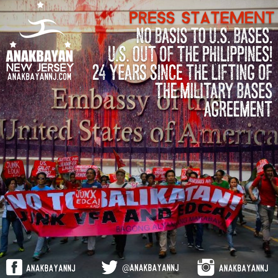 No Basis to U.S. Bases: U.S. out of the Philippines! 24 Years since the Lifting of the Military Bases Agreement