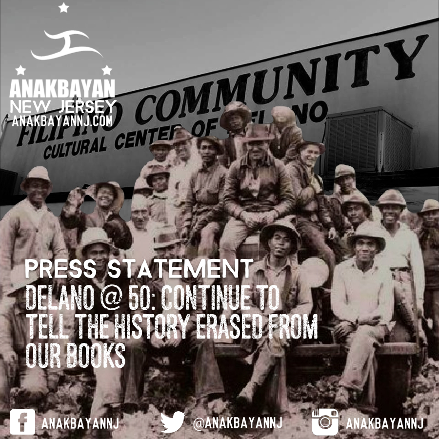 WE MUST NEVER FORGET the contributions of the Delano Manongs! U.S. History textbooks remove our stories and replace it with bourgeois mainstream curriculum. While legislation exists to ensure the learning of the Filipino Farm Workers such as California’s Assembly Bill 123, we must not rest until it is institutionalized nationwide and carried in practice. As Anakbayan New Jersey, we will ensure the propagation of the Filipino Farm Workers in Delano as part of continuing the radical tradition of resistance against oppression. While Larry Itliong, Philip Vera-Cruz, Pete Velasco, and others are no longer with us, WE are them. NEW Larry Itliongs will emerge; NEW organizers will rise and will continue to arouse, organize, and mobilize for the new society youth will one day inherit.