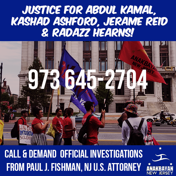 Anakbayan New Jersey Demands Justice for Abdul Kamal, Kashad Ashford, Jerame Reid, and Radazz Hearns! End State Violence on Black Lives!