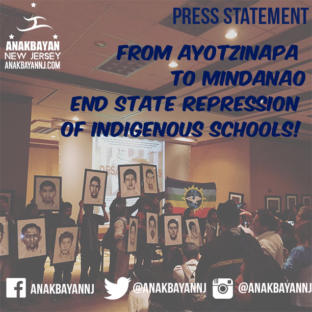 From Ayotzinapa to Mindanao End State Repression of Indigenous Schools! Anakbayan New Jersey Demands Justice for the 43 Students of Ayotzinapa One Year Later
